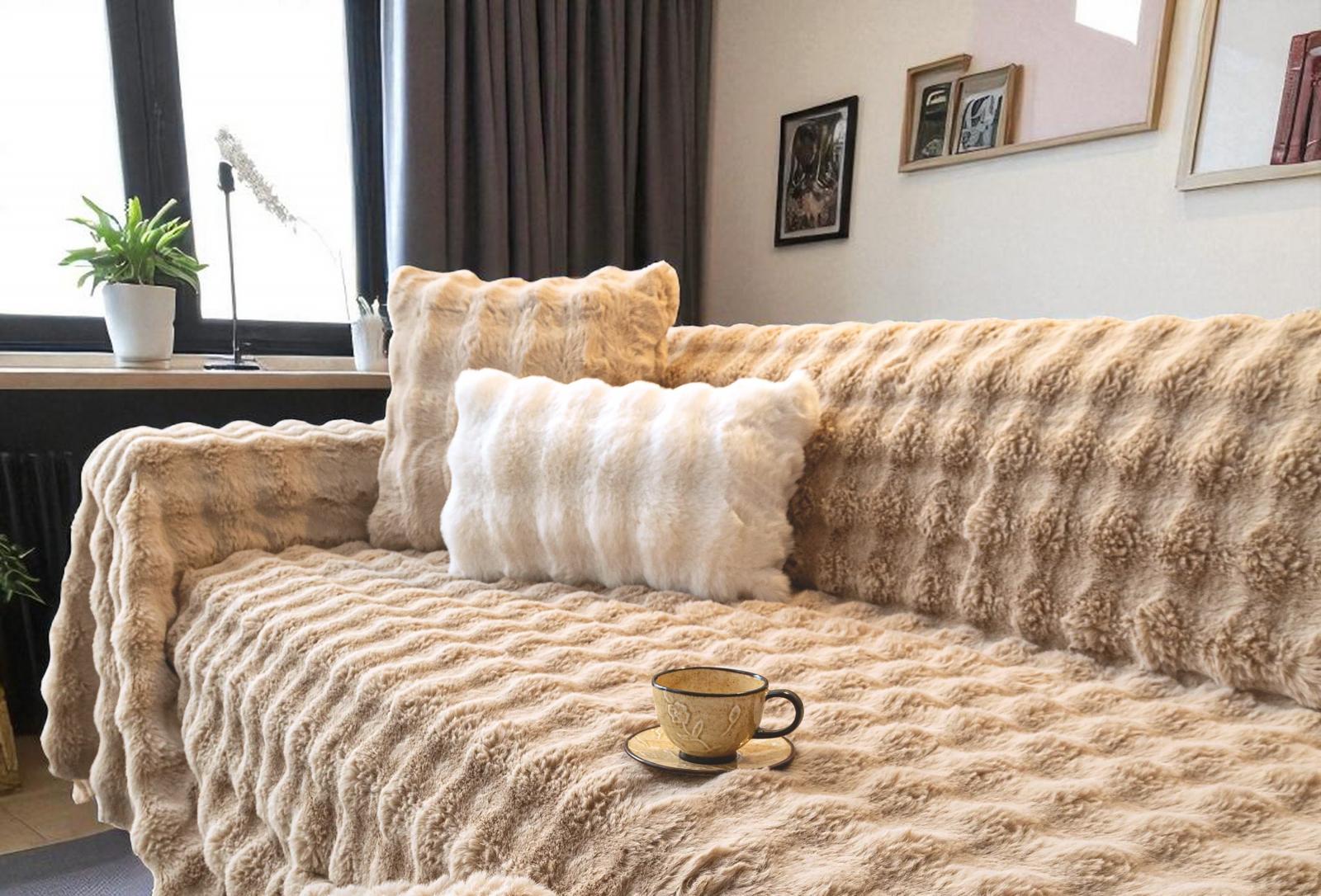 Αντιολισθητικό ριχτάρι rabbit fur μπεζ μεμονωμένα 180×300 LINEAHOME