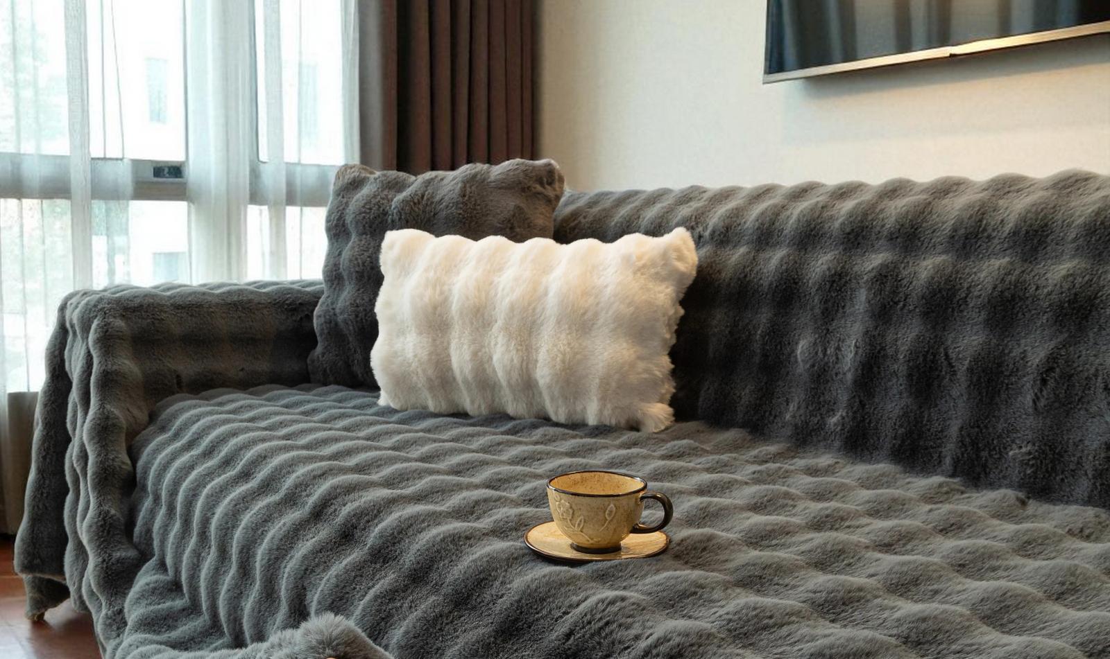 Αντιολισθητικό ριχτάρι rabbit fur σετ 3τμχ. γκρι 180Χ160 +180Χ240 +180X300 LINEAHOME