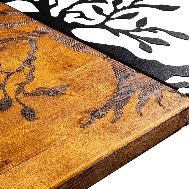 - Κατασκευασμένο από ξύλο πεύκου υψηλής ποιότητας (πάχους 3cm) με σχέδια να είναι κατασκευασμένα από μέταλλο σε μαύρο χρώμα (1,5mm).
