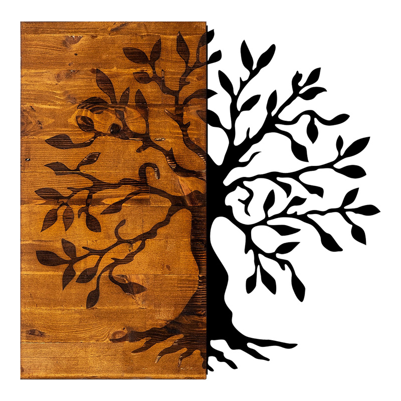 Διακοσμητικό τοίχου Trelbo pakoworld ξύλο πεύκου σε φυσική απόχρωση με μαύρο μέταλλο 58x3x58εκ