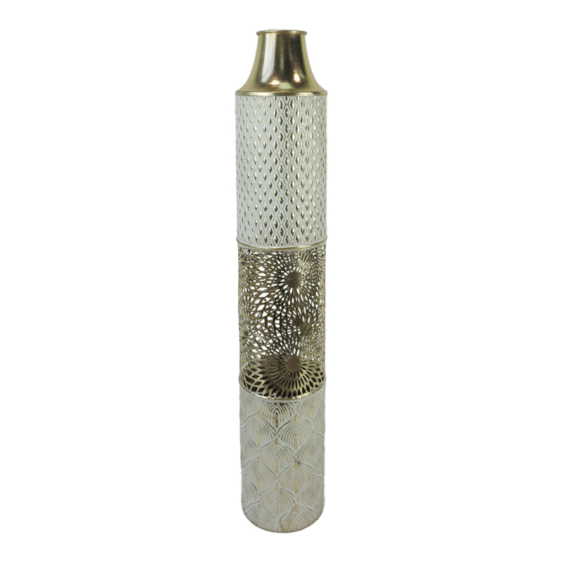 Διακοσμητικό βάζο δαπέδου Tecna Inart μέταλλο σε χρυσή και λευκή απόχρωση Φ14.6×81.3εκ