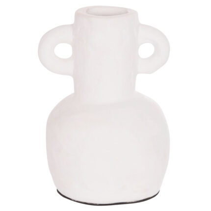Το διακοσμητικό βάζο CLAYVON είναι ένα πολύ ιδιαίτερο διακοσμητικό στοιχείο για κάθε χώρο. Είναι κατασκευασμένο εξολοκλήρου από τερακότα σε ΛΕΥΚΟ χρώμα και το στόμιό του είναι σχετικά μικρό.