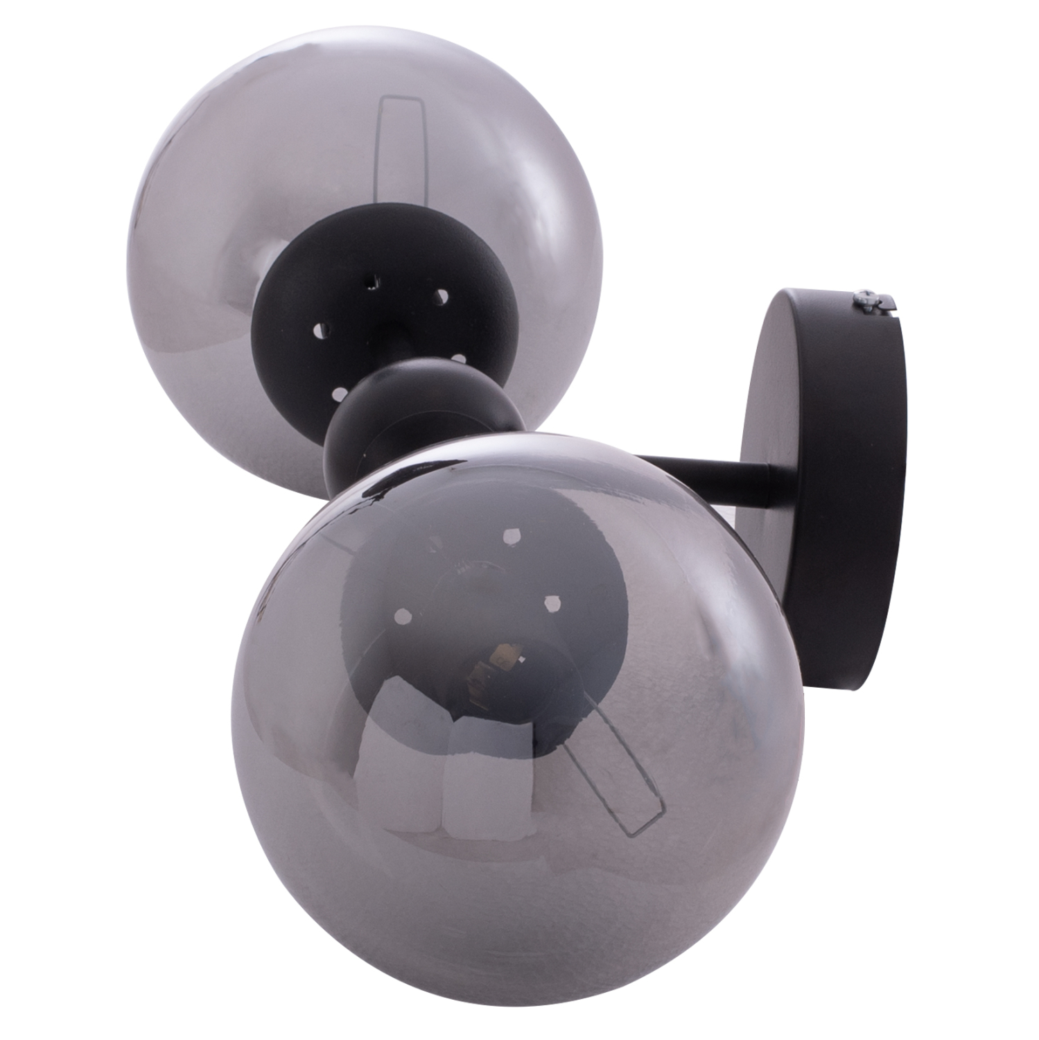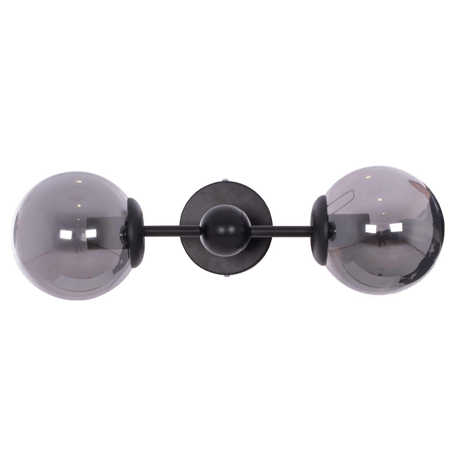 Η απλίκα είναι μεταλλική, πράγμα που της δίνει ανθεκτικότητα και διαχρονικότητα. Οι γλόμποι είναι γυάλινοι σε ημιδιάφανο γκρι στυλ.