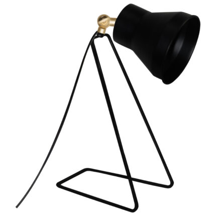 Επιτραπέζιο διακοσμητικό φωτιστικό με ξύλινη κυκλική βάση σε καφέ χρώμα και «καπέλο» σε σχήμα μανιτάρι σε μαύρο χρώμα. Το φως διαχέεται στον χώρο κυρίως προς τα κάτω και η αντανάκλασή του πάνω στην χρυσή μεταλλική κολωνίτσα του φωτιστικού παιχνιδίζει ευχάριστα στο μάτι. Αυτού του είδους τα φωτιστικά δεν προορίζονται για φωτιστικά διαβάσματος και αυτό πρέπει πάντα να λαμβάνεται υπόψη κατά την επιλογή τους. Είναι καθαρά διακοσμητικά και το ταίριασμά τους με τον περιβάλλοντα χώρο θα πρέπει να είναι αρμονικό. Αυτό το φωτιστικό είναι λιτό, κομψό και βολικό σε διαστάσεις παρέχοντας αμέτρητες δυνατότητες «δεσίματος» με την υπόλοιπη διακόσμησή σας. Είναι ένα μικρό έργο τέχνης.