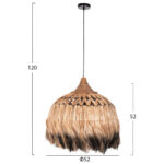 Hm7761- Kρεμαστό φωτιστικό—- Αν επιθυμείτε να διακοσμήσετε το χώρο σας με ένα φωτιστικό σε boho στυλ, αυτό είναι μια χαρακτηριστική επιλογή. Είναι ένα μονόφωτο φωτιστικό με «καπέλο» σε σχήμα καμπάνας φτιαγμένο από ίνες κάνναβης Μανίλας σε φυσικό και μαύρο χρώμα. Το ιδιαίτερο χαρακτηριστικό αυτού του φωτιστικού είναι ότι στο επάνω μέρος του καπέλου οι ίνες είναι πλεγμένες με χιαστί τρόπο δίνοντας μια άλλη αισθητική στο φωτιστικό.