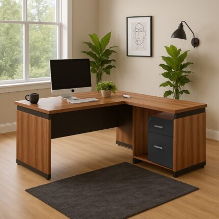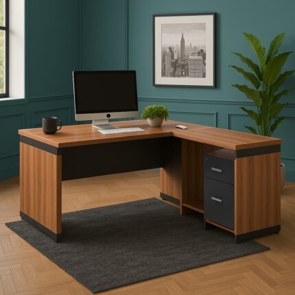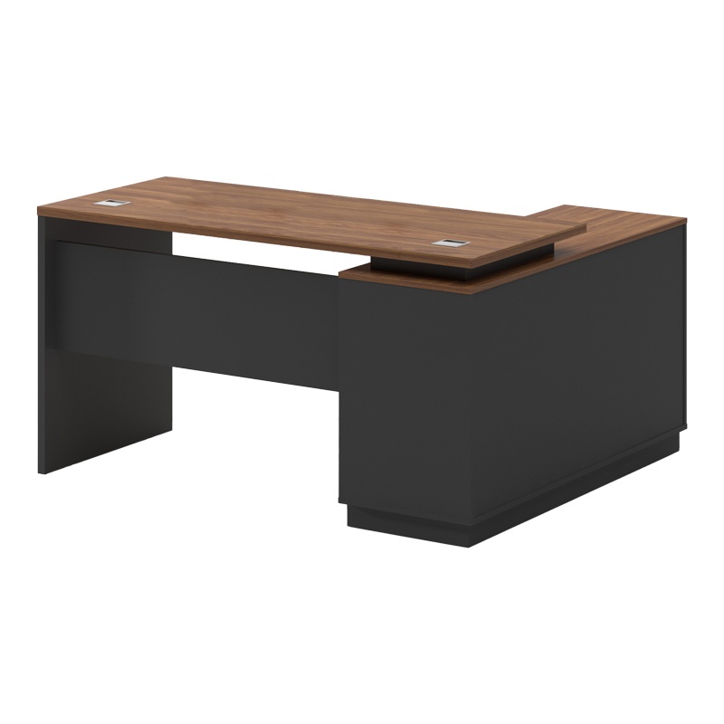 Αναζητάς ένα γραφείο διεύθυνσης που να εκπέμπει κύρος, δύναμη και υπεροχή; Αν ναι τότε η σειρά Oscar είναι ότι χρειάζεσαι για να ολοκληρώσεις την εικόνα της επιχείρησης σου. Γραφείο διεύθυνσης με ενσωματωμένο γωνιακό ερμάριο (στη αριστερή πλευρά), στον εντυπωσιακό χρωματισμό του καρυδί – ανθρακί. Κατασκευασμένο από υλικά υψηλών προδιαγραφών και σύμφωνα με τις εργονομικές απαιτήσεις του σήμερα.