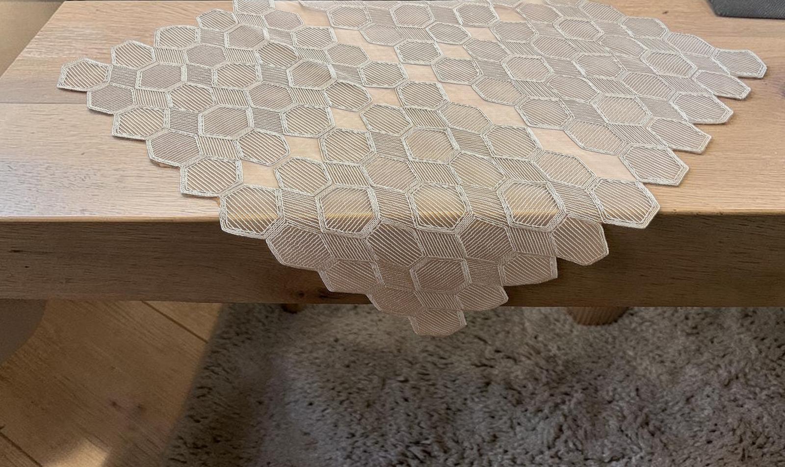 Κομψό και διαχρονικό σετ με φίνο δαντελωτό σχέδιο, ιδανικό για να αναδείξει το τραπέζι ή το σαλόνι σας με διακριτική πολυτέλεια.