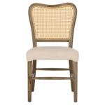 Η καρέκλα αυτή είναι μια φαρδιά καρέκλα για επαγγελματική χρήση, χωρίς μπράτσα απαράμιλλης ομορφιάς. Ο πανέμορφος σκελετός της είναι από ποιοτικό ξύλο σε καφέ χρώμα, ενώ η πλάτη σε σχήμα πεταλούδας είναι επενδυμένη με φυσικό rattan. Tο φαρδύ κάθισμα, από την άλλη, είναι επενδυμένο με λευκό ύφασμα. Μια όμορφη καρέκλα που θα αποτελέσει το κέντρο ενδιαφέροντος οπουδήποτε και αν τοποθετηθεί.