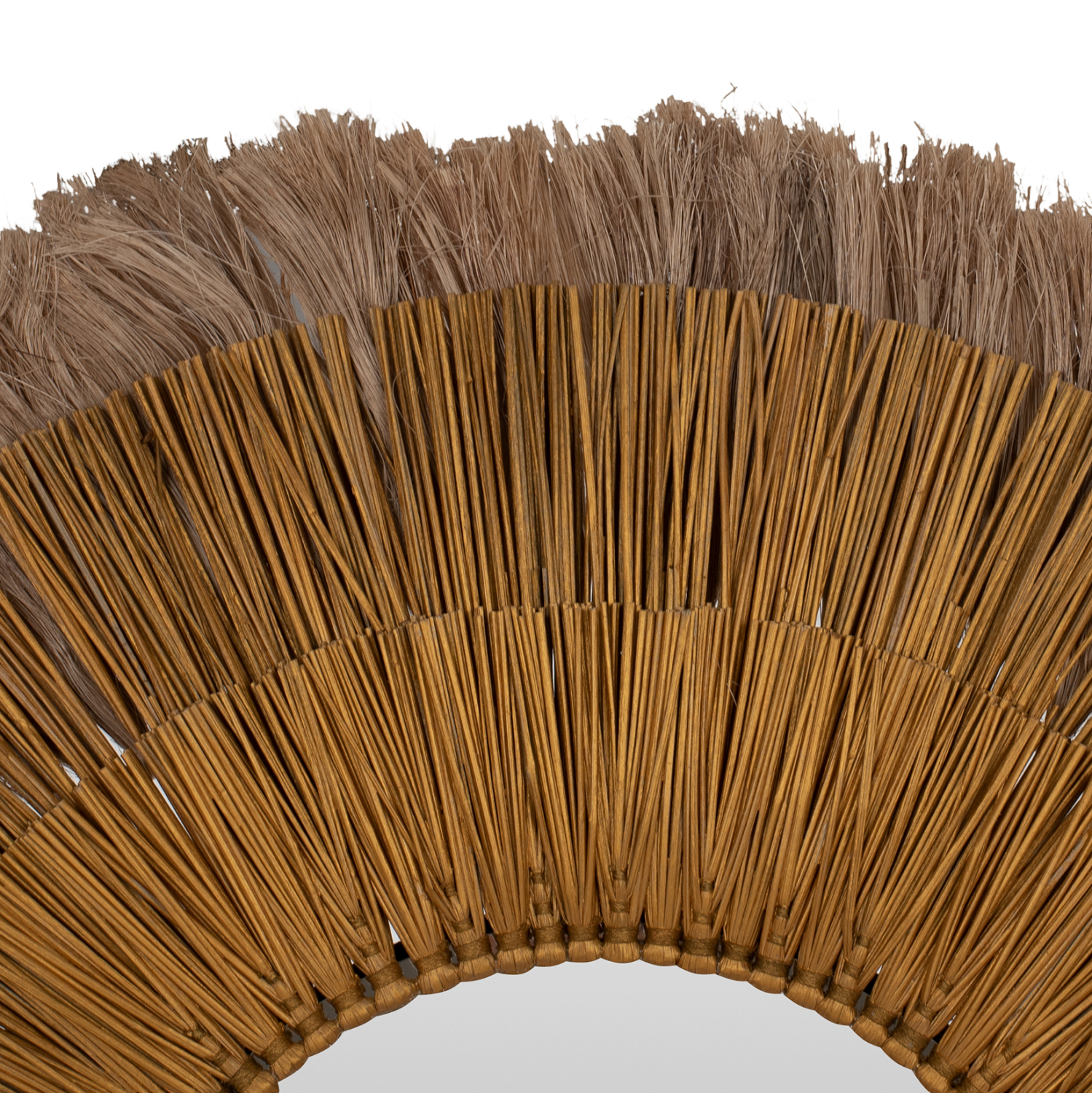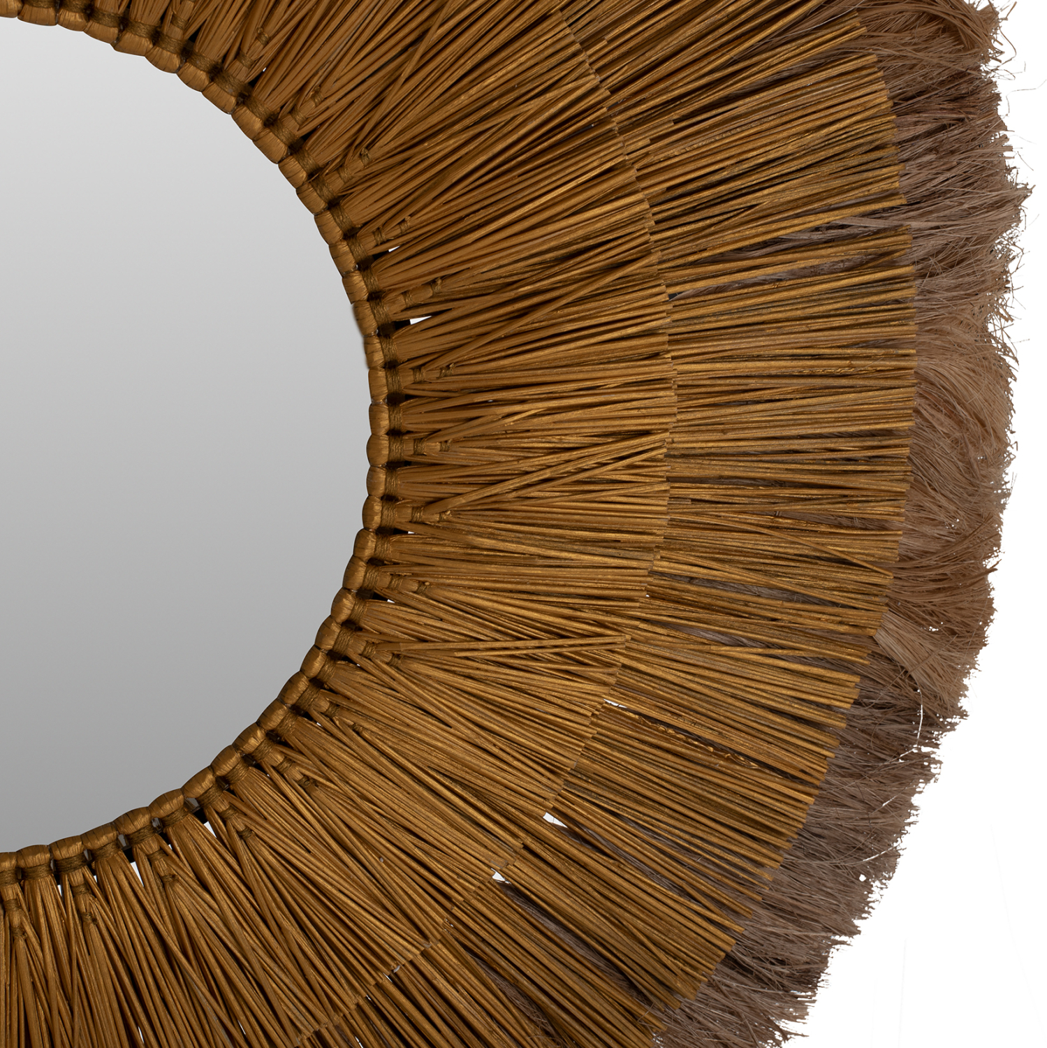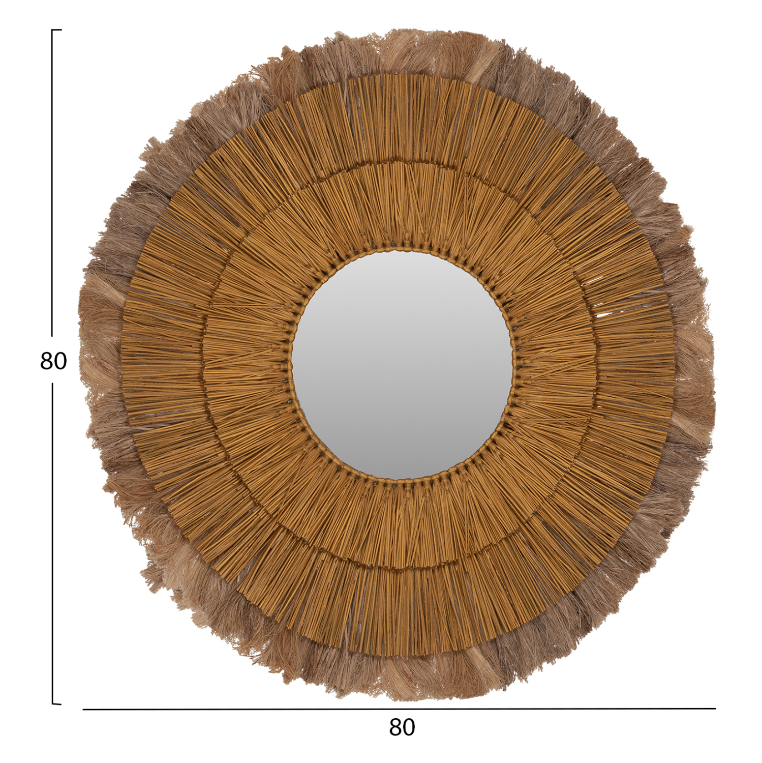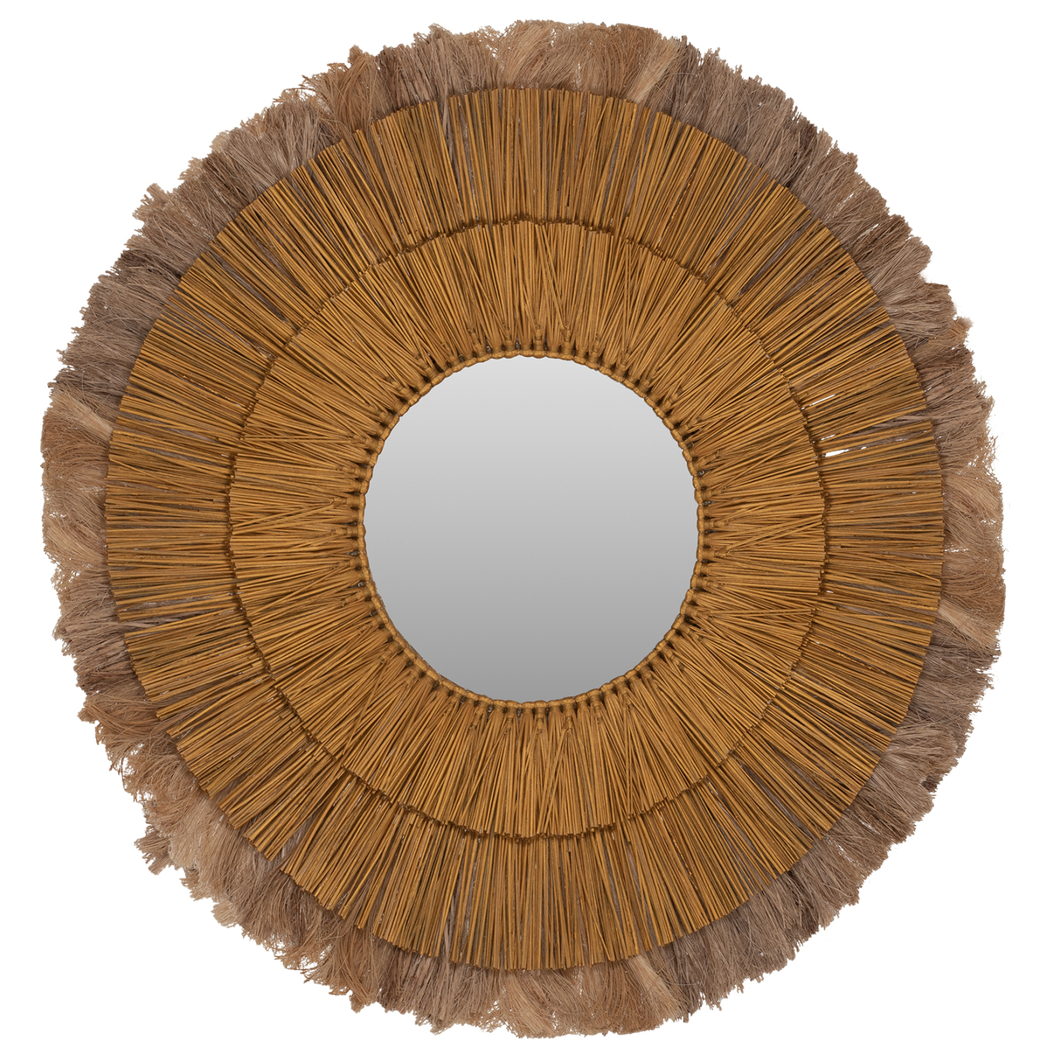 O στρογγυλός καθρέπτης ΗΜ7797 είναι πραγματικά ένα εντυπωσιακό κομμάτι στην διακόσμηση του χώρου σας! Το design του είναι όμορφο με πλαίσιο από 3 δακτυλίους με φυσικά υλικά. Οι δύο μικρότεροι δακτύλιοι έχουν κατασκευαστεί από Mendong Grass σε χρυσό χρώμα, ενώ ο μεγαλύτερος πίσω δακτύλιος έχει γίνει με ίνες κάνναβης Μανίλας σε φυσικό χρώμα. Ο καθρέπτης στο κέντρο είναι μικρός και συμπληρώνει με όμορφο τρόπο αυτό το διακοσμητικό κυρίως κομμάτι.