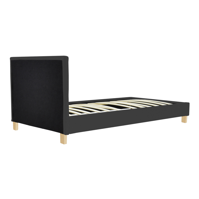Κρεβάτι Nevil pakoworld ύφασμα ανθρακί με ξύλινο πόδι σε φυσική απόχρωση 100×200εκ