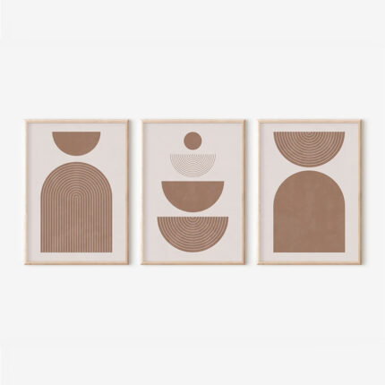 Αναβαθμίστε τον χώρο σας με την απόλυτη ηρεμία του αφηρημένου design: το Τρίπτυχο Derda είναι το ιδανικό στοιχείο για να προσδώσετε έναν minimalist, boho-chic χαρακτήρα στους τοίχους σας. Αυτή η σύνθεση τριών τεμαχίων, ενισχυμένη από ψηφιακές εκτυπώσεις υψηλής ανάλυσης, διαθέτει αφηρημένα μοτίβα με ημικυκλικά και γεωμετρικά σχήματα σε μία ζεστή παλέτα από γήινες, ουδέτερες αποχρώσεις. Μέσα από την αρμονική τους αλληλεπίδραση, δημιουργούν έναν ήρεμο, sophisticated ρυθμό και μία διακριτική αισθητική δήλωση.