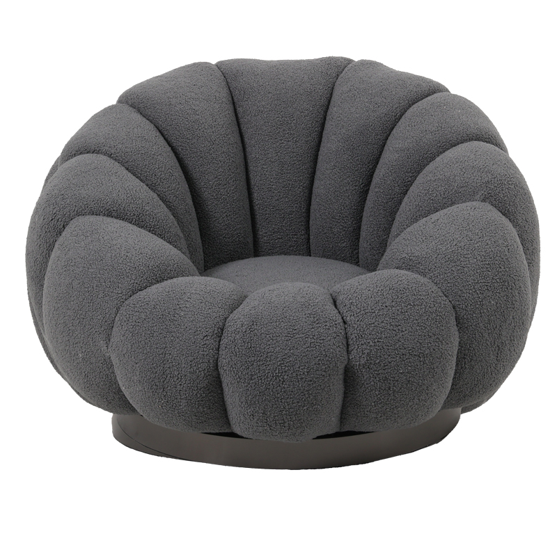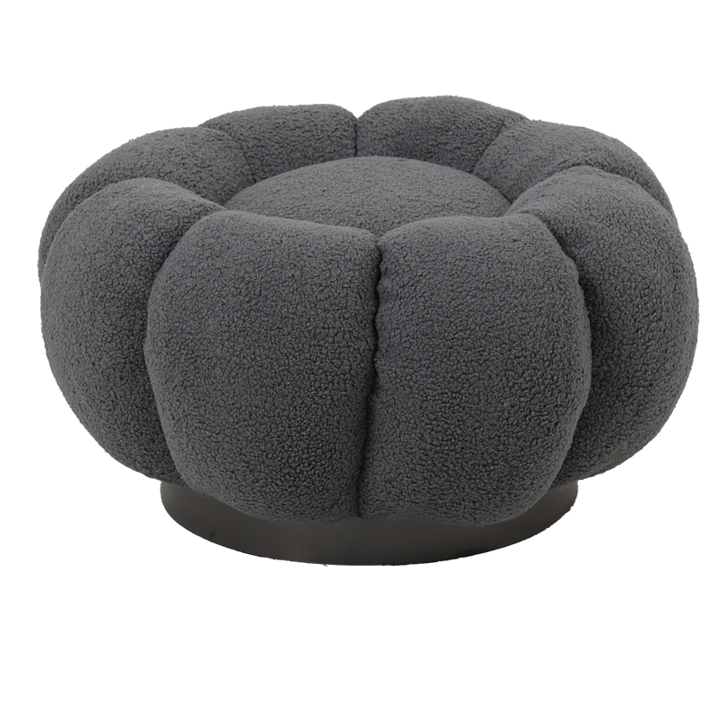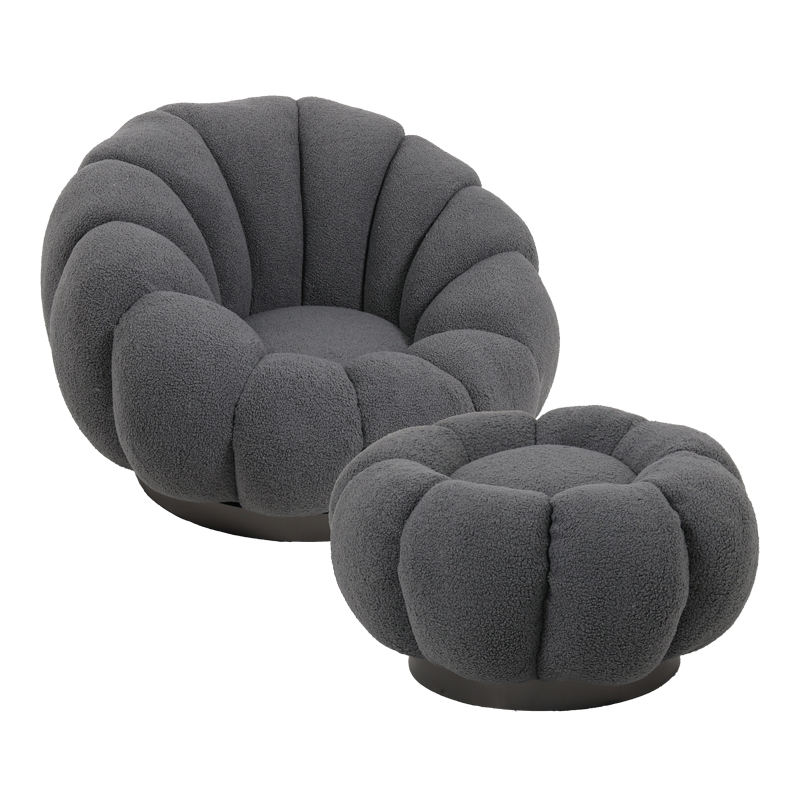 Πολυθρόνα περιστρεφόμενη με σκαμπό Nester pakoworld μπουκλέ ύφασμα σε γκρι απόχρωση 98x97x69εκ
