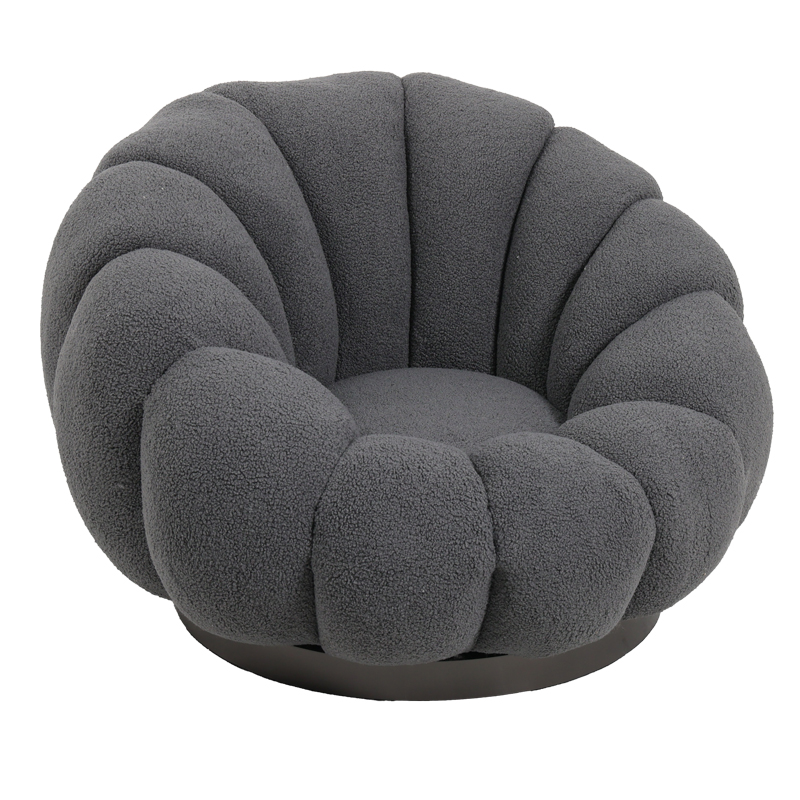 Πολυθρόνα περιστρεφόμενη Nester pakoworld μπουκλέ ύφασμα σε γκρι απόχρωση 98x97x69εκ