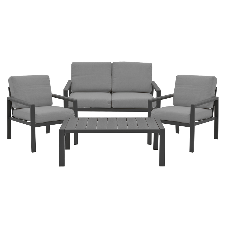 Σαλόνι Fashionable pakoworld σετ 4τμχ ύφασμα σε γκρι απόχρωση και αλουμίνιο-plywood σε ανθρακί απόχρωση