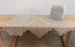 Κομψό και διαχρονικό σετ με φίνο δαντελωτό σχέδιο, ιδανικό για να αναδείξει το τραπέζι ή το σαλόνι σας με διακριτική πολυτέλεια.