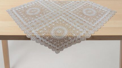 Κομψό και διαχρονικό σετ με φίνο δαντελωτό σχέδιο, ιδανικό για να αναδείξει το τραπέζι ή το σαλόνι σας με διακριτική πολυτέλεια.