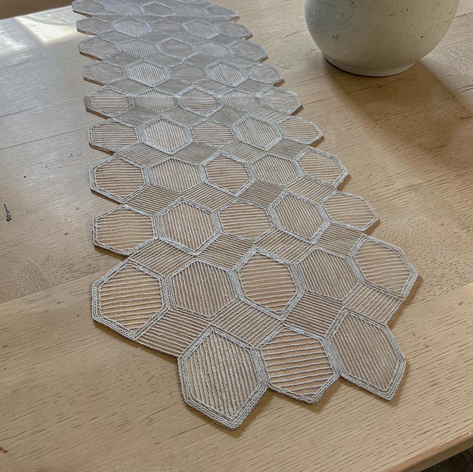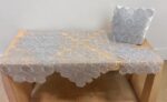 Κομψό και διαχρονικό σετ με φίνο δαντελωτό σχέδιο, ιδανικό για να αναδείξει το τραπέζι ή το σαλόνι σας με διακριτική πολυτέλεια.