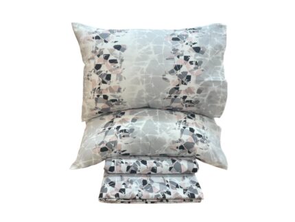 Μοντέρνο σετ σεντονιών εμπριμέ για διπλο κρεβάτι, κατασκευασμένο από ύφασμα Polycotton 80/20. Απαλό στην αφή, ανθεκτικό και εύκολο στη φροντίδα, ιδανικό για καθημερινή χρήση.
