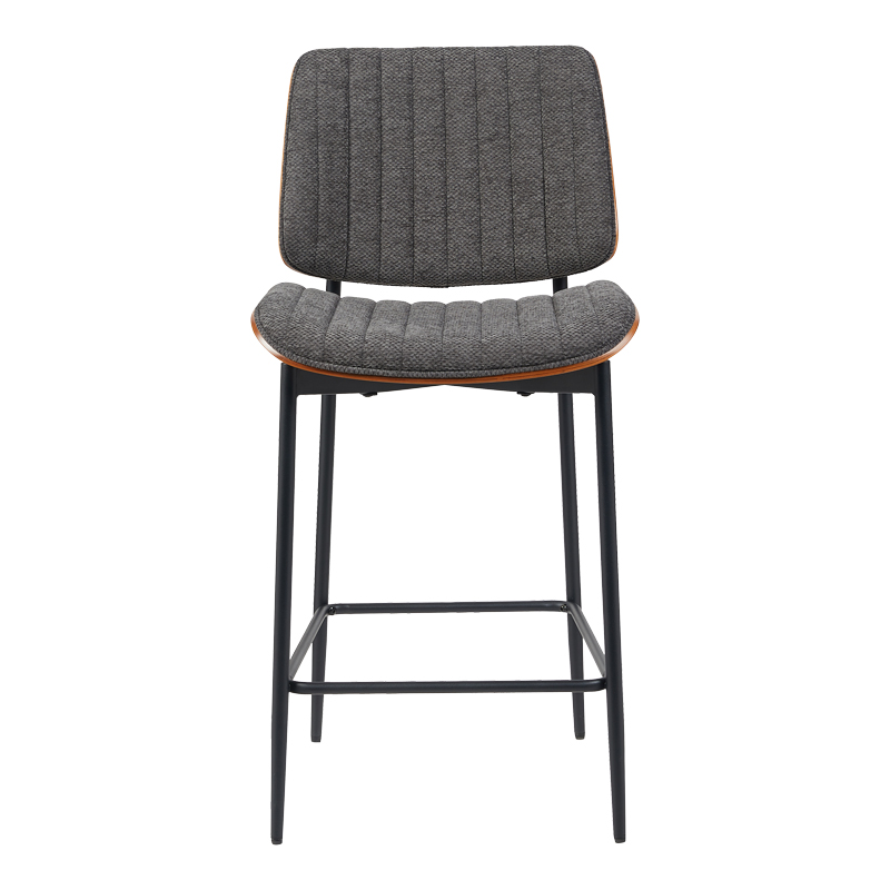 Σκαμπό-μπαρ Kathy pakoworld ξύλο σε καρυδί με γκρι ύφασμα 48.5×52.5×96εκ