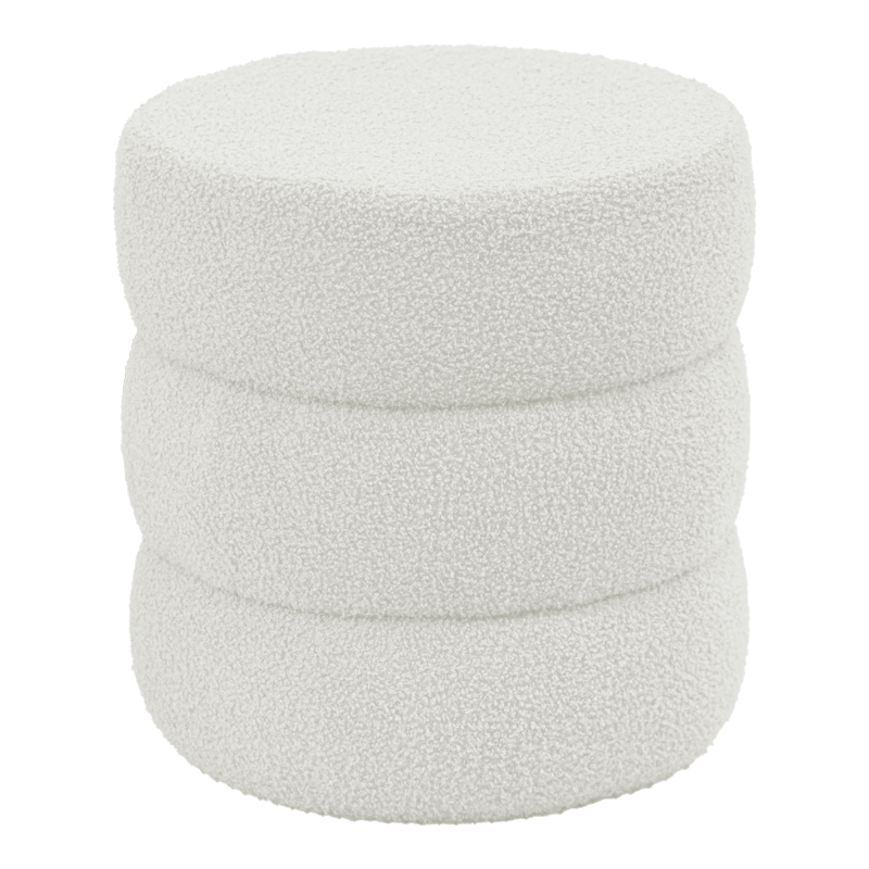 Σκαμπό-πουφ Kioto pakoworld μπουκλέ λευκό Φ40×40εκ