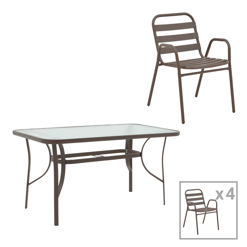 Τραπεζαρία Ensure-Sussie pakoworld 5τεμ μέταλλο σε καφέ απόχρωση 140x80x70εκ