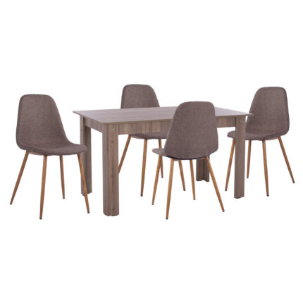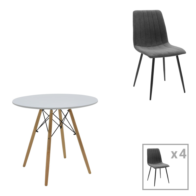 Τραπεζαρία Julita-Noor pakoworld σετ 5τεμ MDF λευκό-ανθρακί-πόδια φυσικό Φ80×73εκ