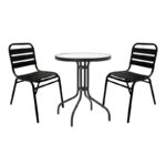 Τραπεζαρία Sussie- Watson pakoworld σετ 3τεμ μέταλλο μαύρο-γυαλί Φ60×70εκ