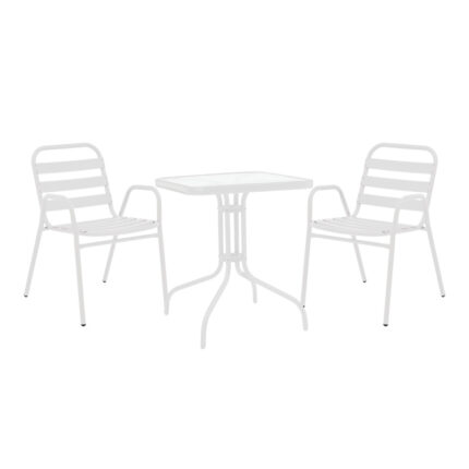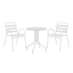 Τραπεζαρία Watson-Sussie pakoworld σετ 3τεμ μέταλλο λευκό-γυαλί Φ60×70εκ