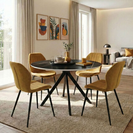Κομψό Στρογγυλό Τραπέζι Τραπεζαρίας με εφε Μαρμάρου & Καινοτόμα Βάση