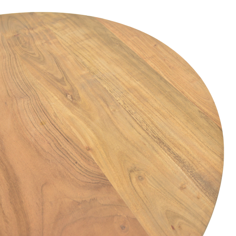 - Φυσική Ομορφιά & Ζεστασιά: Η στρογγυλή επιφάνεια από μασίφ ξύλο, με τους ορατούς κόκκους και τις πλούσιες αποχρώσεις της, προσδίδει μια αίσθηση γαλήνης και ζεστασιάς. Είναι το τέλειο φόντο για τα αγαπημένα σας αντικείμενα ή για να απολαύσετε τις καθημερινές σας στιγμές.