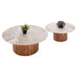 Το ΗΜ11915 είναι ένα σετ 2 τραπεζιών σαλονιού FORMEL σε μεγάλη και μικρή διάσταση, που είναι από τις νέες προσθήκες στην γκάμα μας. Πρόκειται για ένα πολυτελές στρογγυλό τραπέζι με κυλινδρική ξύλινη βάση σε ΦΥΣΙΚΟ χρώμα ξύλου. Η επιφάνεια είναι από μάρμαρο σε διάφορους ανοιχτόχρωμους χρωματισμούς. Ο συνδυασμός είναι πραγματικά κάτι το μοναδικό και εντυπωσιακό. Ιδανικό τόσο για το σπίτι, όσο και για επαγγελματικούς χώρους.