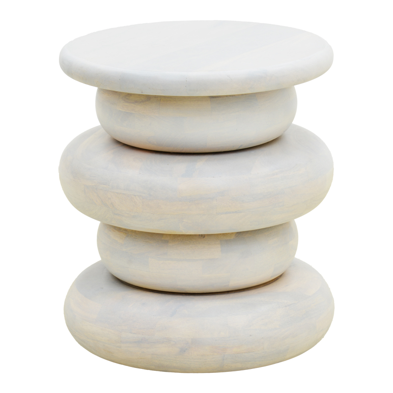 Βοηθητικό τραπέζι Circena pakoworld μασίφ μάνγκο ξύλο λευκό Φ40×45εκ